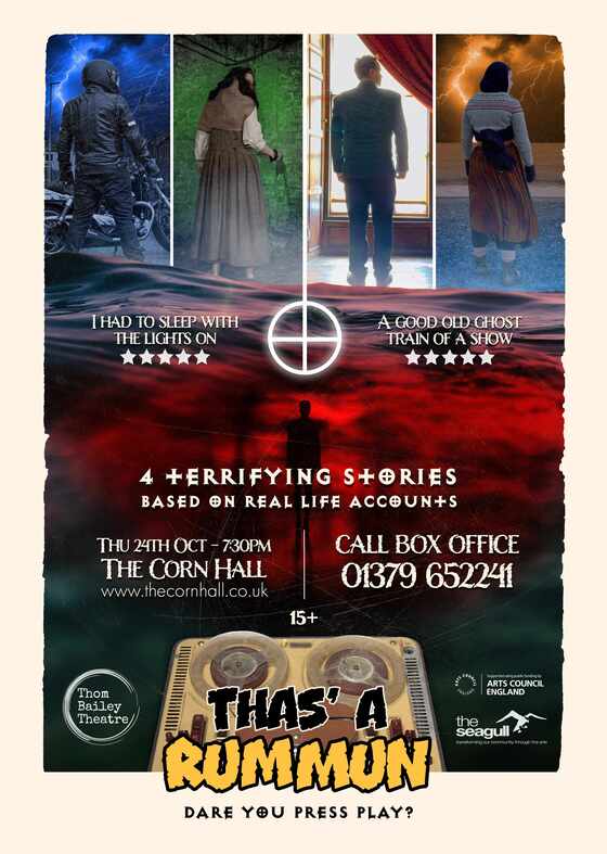Thom Bailey Theatre supported by the Arts Council and the Seagull Theatre presents: Thas’ a Rummun! A new play by Mark Finbow, Roseanna Frascona, Abby McCann, and Mylo McDonald. At the Devil’s hour, in a small hut somewhere deep within the Norfolk countryside, a tape recorder starts to play by itself… Based on real-life interviews conducted across the East Anglian Coastline, this night of chilling and spooky storytelling focuses on four stories, spanning four centuries and interweaves accusations of witchcraft, superstition, poltergeists and exorcisms with the rich and complex folklore of our coastal communities.
