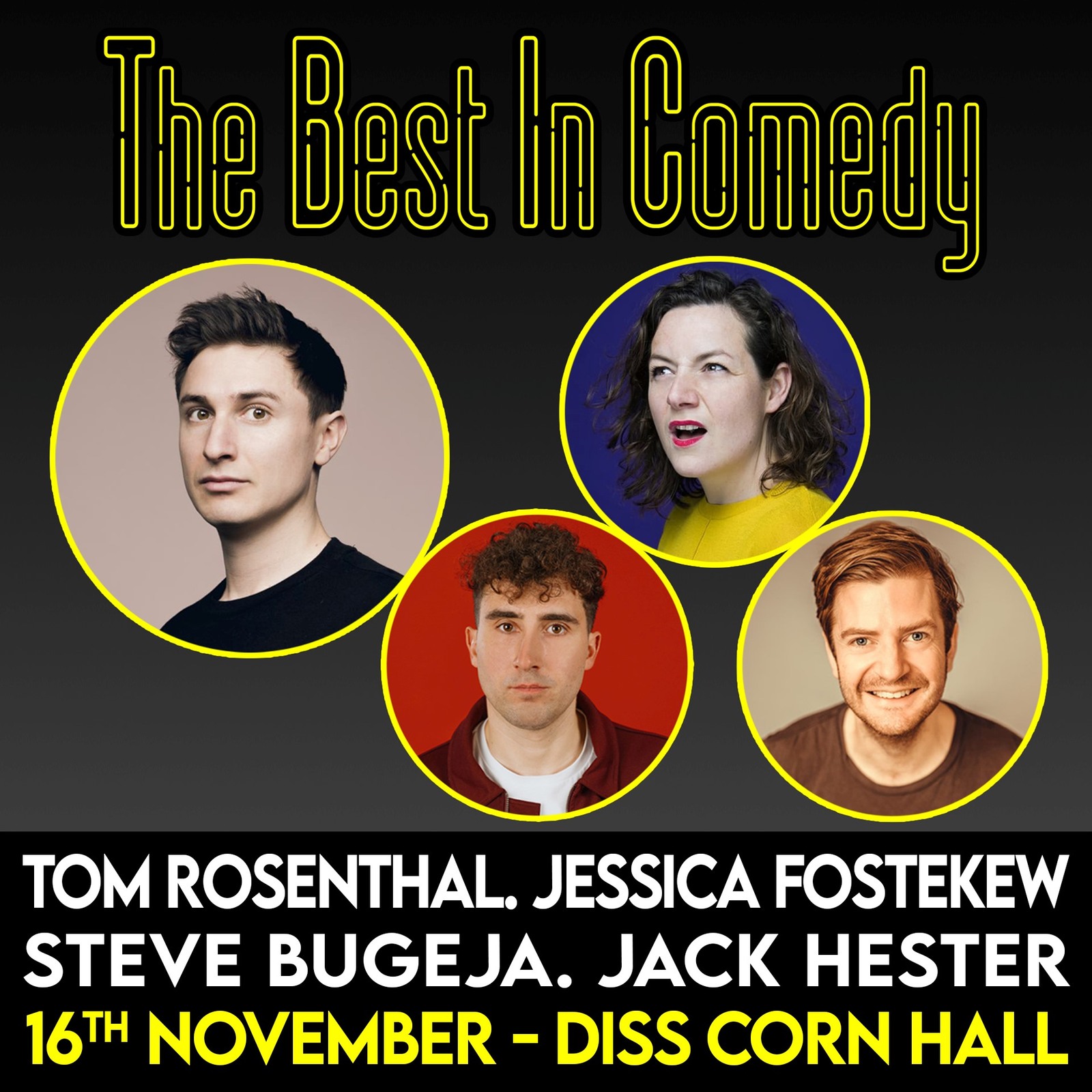 The Best in Comedy show returns to The Corn Hall this November with a fantastic line-up featuring the hilarious Tom Rosenthal, Jessica Fostekew, Steve Bugeja & Jack Hester!